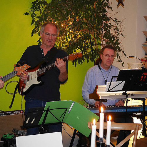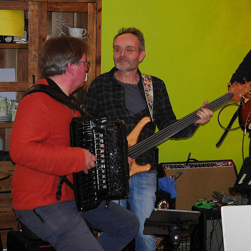 ‚Uptime‘ ist ein Quintett mit Akkordeon, Bass, Gitarre, Keyboard und Drums. Mit ‚Nowhere Man‘ von den Beatles beginnen sie, sehr groovig und schwungvoll. Interessant ist die Kombination von Akkordeon und E Gitarre, wenn Klaus Jochmannum und Christoph Wember um die Wette solieren. Als der Keyboarder und Bandleader Martin Wirsdörfer zum TenorSax greift, bekommt die Musik noch mehr Klangfarbe und schließt mit ‚Chicken‘ das Konzert ab.