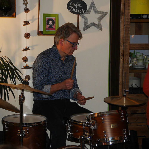 Knapp 50 Personen finden Platz im Café, das echte Wohnzimmer-Atmosphäre ausstrahlt. Kerzen, Lampen, Kronleuchter, Schränke, eine kleine Theke, Bilder an den Wänden, Blumen. Die Musiker spielen ebenerdig, direkt vor dem Publikum, das wiederum an langen Tischen sitzt. Nähe spielt eine große Rolle, viele kennen sich, ein fast familiäres Ambiente.