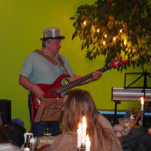 Roland Kaschube schließlich tritt solo mit seinem E Bass in Erscheinung. Doch er spielt kaum, sondern berichtet in der Art eines Kabarettisten über Erlebnisse mit seinem E Bass. Auch ein Musikrätsel gehört dazu, bei dem Stücke anhand von Bass-Licks erkannt werden sollen. Die ‚Sham Rock’n Bluesband‘ ist im Café Desaster gut bekannt und schließt dieses kleine Festival mit einer Bluessession ab.