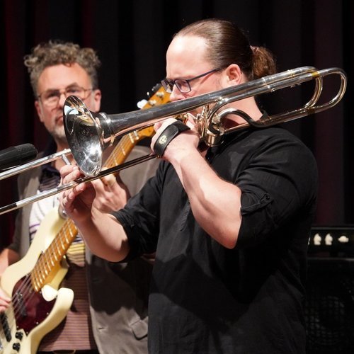 Diese vielfältigen Kompositionen konnte Sebastian Gahler Dank seiner herausragenden Band umsetzen. Im Mittelpunkt stand dabei neben dem Keyboarder, der New Yorker Posaunist Andy Hunter, der Mitglied der WDR Big Band ist. Mit seiner nahezu singenden Posaune gab er die Melodielinien vor und hatte die größten Solianteile. Unterstützt wurde er dabei von Martin Feske an der E-Gitarre, der Hunters Melodien aufgriff und weiterführte oder gekonnt umspielte. Die Rhythmusgruppe mit Nico Brandenburg am E-Bass und Niklas Schneider am Schlagzeug sorgte für ein solides rhythmisches Fundament und beide Musiker brachten ihre eigenen Impulse in die Musik mit ein. Die Besetzung der Band, entspricht auch der des Albums Electric Stories, bis auf den Saxofonisten Denis Gäbel, der im Maxhaus nicht dabei war.