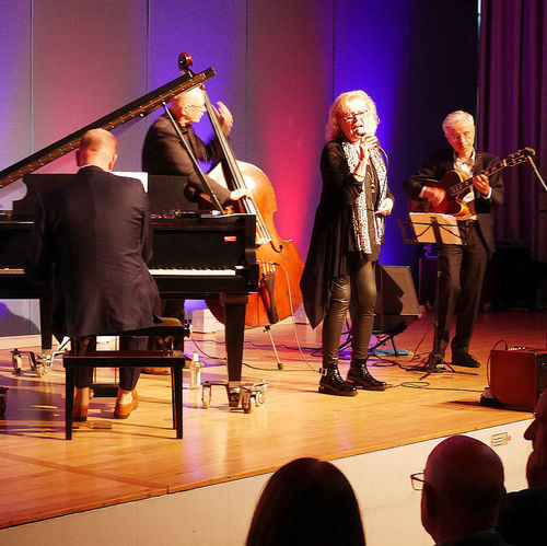 "Spring" reimt sich nicht nur auf "Swing", bei beiden Begriffen geht es um ein Grundgefühl, das für Aufbruch, Hoffnung und Erwartung steht. "Blue Skies", eine Komposition von Irving Berlin, passt gut dazu. In der Folge sind weitere berühmte Stücke aus der Swing-Ära zu hören von George Gershwin, Cole Porter, Hoagy Carmichael, Nat King Cole, Fats Waller und anderen. Silvia Droste wird oft "First Lady des Jazzgesangs" genannt und sie wird ihrem Ruf auch heute gerecht. Sie singt, chattet, wirbelt putzmunter und gut gelaunt über die Bühne. Sie agiert mit viel Gestik, singt ihre Mitmusiker an, überspringt mühelos Oktaven und meistert souverän Halbtonschritte der oft kniffeligen Jazzharmonien. Typisch für Konzerte von Chris Hopkins sind die wechselnden Band-Konstellationen, mal Quartett, mal Trio, mal Duett. So auch hier, diesmal auch mit einem Piano-Solo zu "The Echoes of Spring". Der Gitarrist Rolf Marx und der Bassist Henning Gailing sind heute für den Groove zuständig. Sie sind erste Klasse im Swing und haben schon oft mit dem Pianisten Chris Hopkins zusammengespielt. "Mackie Messer" kommt immer gut, doch am meisten Beifall erhält die Ballade "Stardust", bei der Chris Hopkins Altsaxophon spielt. "Just one of those things" hat in den 1960er Jahren einmal Hildegard Knef auf Deutsch gesungen als "Es war nur das und nicht mehr". Silvia lobt ausdrücklich die Musik von Cole Porter, weil er Texte und Musik geschrieben hat. Sie singt das Stück sehr empathisch im Wechsel auf Englisch und auf Deutsch. Bei der Zugabe gibt es eine Überraschung. Eine Schülerin und ein Schüler von Silvia Droste singen und spielen auf dem Altsaxophon zusammen mit der Band "Cheek to Cheek". Da sind sogar die Veranstalter überrascht.