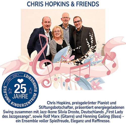 Benefizkonzerte im Jazz sind eher ungewöhnlich. Doch Chris Hopkins fungiert seit zwei Jahren als "Botschafter" der Stiftung Kinderzentrum Ruhrgebiet. Die Kooperation zwischen Künstler und Stiftung besteht darin, gemeinsam z. B. musikalische Projekte für Stationen der Kinderklinik zu planen. Darüber hinaus macht Chris als Botschafter die Stiftung – und damit auch sich selbst - bekannt und kann zu Spenden aufrufen. Eine typische Win-Win-Situation. Chris spielt deshalb auch heute ohne Honorar, auch die Verkäufer von Wein und Schokolade spenden, da dürfte ein schönes Sümmchen zustande kommen. In der Woche danach wurde klar: Fast 11.000 Euro wurden insgesamt gespendet, ein großer Betrag, der unter anderem für den Bau eines Kinderschutzhauses mit Anbindung an die Bochumer Kinderklinik verwendet werden soll.