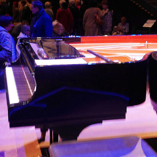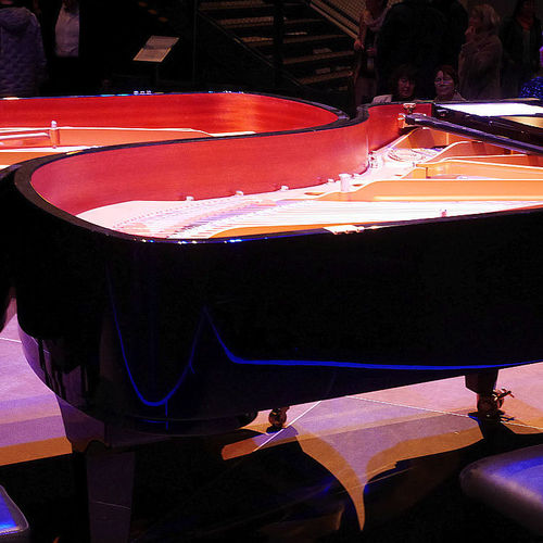 In der Pause werden die beiden Flügel um 45 Grad gedreht, damit ein Teil des Publikums nicht nur den Rücken der Musiker sehen muss. Beide Flügel sind geöffnet, die Deckel wurden abgenommen und die Musik muss nicht verstärkt werden; Mikros werden nur für Ansagen gebraucht.