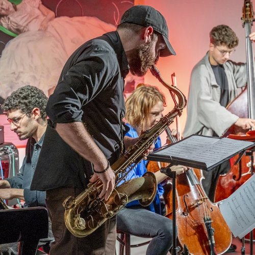 Die Bandmitglieder sind alle erfahrene Improvisationsmusiker*innen: Elisabeth Coudoux am Cello, Jeremy Viner an Klarinette und Saxofon, Felix Hauptmann am Piano, Roger Kintopf am Bass und Tancréde D. Kummer am Schlagzeug. Die Musik der Gruppe war eine Form von Neuer Kammermusik, mit kleinen Melodiebögen an Cello, Klarinette/Saxofon und Klavier. Eine durchaus eingängige Musik, die immer wieder durch unerwarteten Ecken und Kanten bestach. Trotz der notierten Form, entwickelten die einzelnen Musiker*innen eigene Initiativen und folgten ihrer Intuition. So entstand ein sehr kohärenter Ensembleklang von seltsamer und ungewohnter Schönheit.