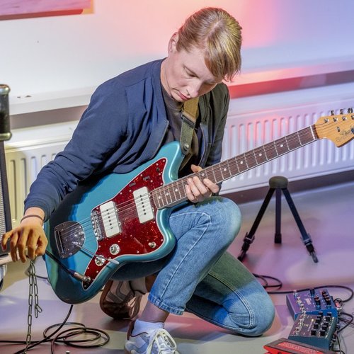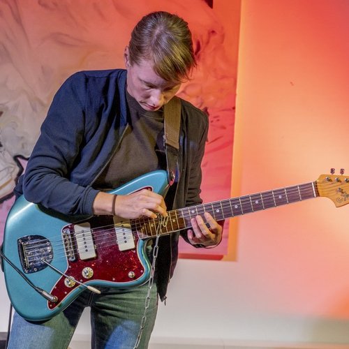 Bei der Eröffnung stand das Vibraphon von Salome Amend im Mittelpunkt und Raissa Mehner begleitete mit leisen Geräuschen an der Gitarre, die sie mit einer Kette, die sie über Saiten zog, produzierte. Simon Camata setzte ebenfalls auf leise Töne. Langsam verdichtete sich dann die Musik. Die Gitarre kam mehr in den Vordergrund und das Schlagzeug wurde prominenter. Die Band spielte abwechslungsreiche improvisierte Musik. Das musikalische Spektrum reichte von abstrakten Klanggebilden aus einzelnen Tönen, über dronige Klangteppiche bis hin zu Blues- und Surfmusikelementen. Raissa Mehner setzte sich immer wieder auf den Boden und legte den Schwerpunkt von Gitarre auf elektronische Effekte. Sie spielte auch Mundharmonika, was den Bluessound betonte und gegen Ende gab es twangige Surf und Americana Klänge. Simon Camata kam mit immer neuen rhythmischen Figuren um die Ecke und auch Salome Amend bereicherte die Musik mit ihren erweiterten Techniken am Vibraphon. Eine sehr spannende Band, die mir schon in Moers aufgefallen war.
