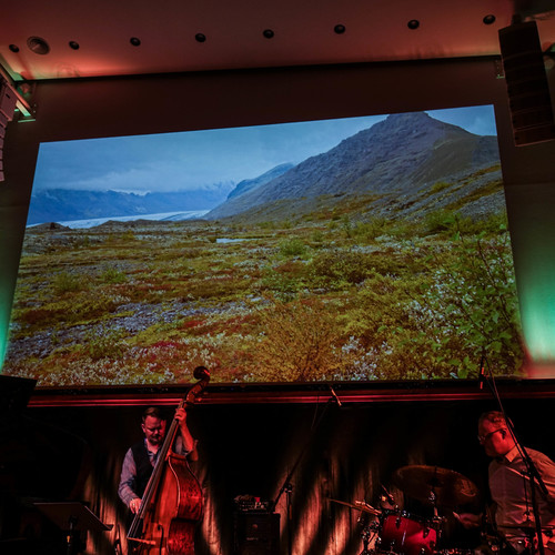 Tiefenentspannter kann man kaum musizieren – fast zu entspannt, aber mit perfekter Kontrolle und im Trio als atmender Organismus. Bassist Jónsson ist präsent, lyrisch ausmalend und melodisch agierend. McLemore an den Drums war die heimliche Entdeckung des Abends mit außergewöhnlicher Sensibilität für die knifflige Akustik der Scharoun-Aula. Statt harten Anschlags lässt er die Besen federnd über die Felle gleiten, findet mikroskopisch feine Abstufungen zwischen Beckenarbeit und Tom-Akzenten. So wird der Raum umschmeichelt, aber nie erobert oder gar einseitig dominiert. Die Bildershow in der Scharoun-Aula zeigt Islands elementare Kräfte: Geysire im Dämmerlicht, schneebedeckte Vulkane, Moosfelder unter dramatischen Wolkenformationen. Während eines meditativen Stücks verschmelzen Bilder schwarzer Lavafelder im Mitternachtslicht mit der Musik. Seltsam: Die Bilder sind oft viel „lauter" als diese unschuldsvolle Musik.