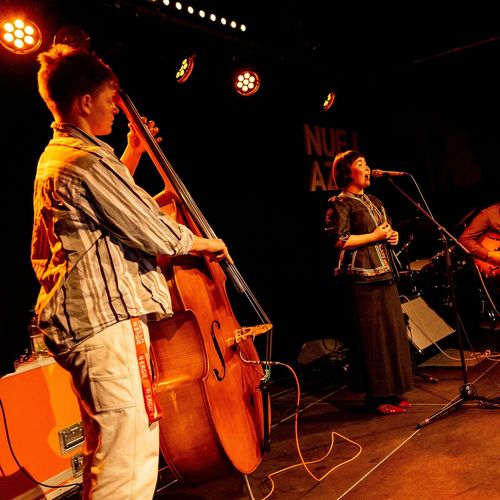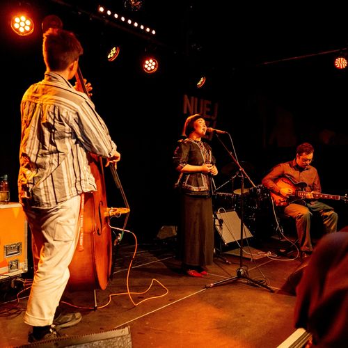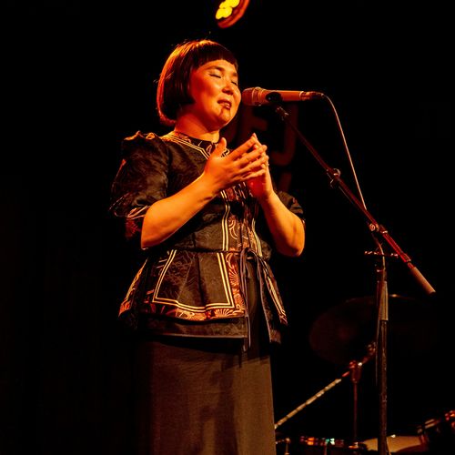 Und NUEJAZZ selbst setzt schöne Kontraste. Während in Clubatmosphäre in der Galerie des Z-Baus die serbische Sängerin Jelena Kuljić in ihrem neuen Projekt „Fundamental Interactions“ anlässlich des 30. Jahrestages des Kriegsendes in Bosnien Texte und Gedichte von Poeten aus Bosnien, Kroatien oder Serbien mit ihrer mit internationalen Top-Freigeistjazzern wie dem deutschen Drummer Christian Lillinger oder dem finnischen Gitarristen Kalle Kalima besetzten Band in einen lauten, aggressiven Soundkosmos integriert, gibt es nur einen Raum weiter seelenvolle, leise Klänge zu hören. Auf der Bühne des intimen Roten Salons steht die Mongolin Enji, die eigentlich Enkhjargal Erkhembayar heißt. Und singt, lediglich begleitet von Kontrabass und einer zart gespielten E-Gitarre, engelsgleich ihre Lieder. Auf Mongolisch. Und es macht überhaupt nichts, dass man die Texte nicht versteht. Zwischendurch erklärt die Sängerin worum es im kommenden Song geht. Aber man spürt ihre Lieder auch so. Im Roten Salon ist es mucksmäuschenstill. Muss es auch sein. Denn der sehnsuchtsvolle Downtempo-Gesang von Enji ist ruhig, weich, voller Seele und Liebe. Einfach traumschön.