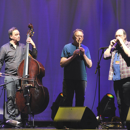 Und dann kündigt Festivalleiter Fritz Schmücker Free-Jazz an. Und man bereitet sich auf Soundgewitter vor. Und wird dann überrascht vom Ruf der Heimat, dem Quartett der beiden aus Münster stammenden Musiker Thomas Borgmann (Saxofone) und Willi Kellers (Schlagwerk). Seit Anfang der Neunziger Jahre gibt es die Band, die aktuelle Besetzung mit Bassist Jan Roder und Posaunist Christof Thewes existiert auch schon seit einiger Zeit. Vier Musiker, die auf der Bühne komplett improvisieren und dabei auch mal herrlich hymnisch klingen. Die jeweils ihr Ding machen, aber den anderen zuhören und gemeinsame, auch melodiöse Wege suchen und finden.