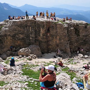 Da klettert eine britische Streetmarching-Band über eine Leiter auf einen acht Meter hohen Felsbrocken und rockte bei strahlend blauem Himmel den Rosengarten. Drei Jazzmusiker reiten über eine Almwiese zu einer in 2000 Meter hoch gelegenen Berghütte und begeistern das hier bewusst aufgestiegene oder zufällig anwesende Publikum mit ausgefeilten Interpretationen alter Western-Melodien. Halleluja!