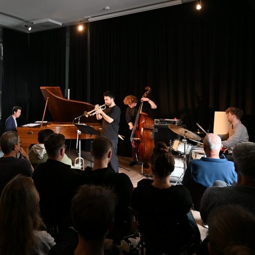 Shogo Seifert hat eine japanische Mutter, daher sein ungewöhnlicher Vorname. Der japanische Anteil in seiner Sozialisation spielt in seiner Musik eine große Rolle. Der spirituelle Lebensstil seiner Mutter, eine klassisch ausgebildete Pianistin, hat ihn stark beeinflusst. Was nicht bedeutet, das japanische Musik in seine Kompositionen einfließt, es geht eher um eine innere Haltung. Sein ganzes Spiel war auf eine achtsame Gegenwärtigkeit ausgerichtet, er war jeden Moment bei sich und vor allem auch bei seinen Mitspielern. Die junge Band hatte einen hervorragenden Ensembleklang, ein wunderbares Miteinander. Leider war aus organisatorischen Gründen nur eine Stunde Zeit für das Quartett. Das Publikum hätte sie gern noch länger gehört.