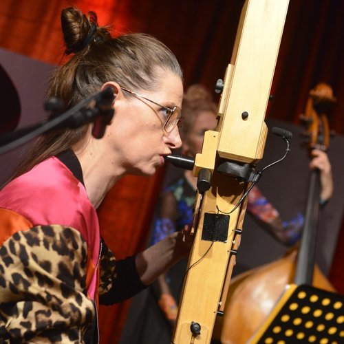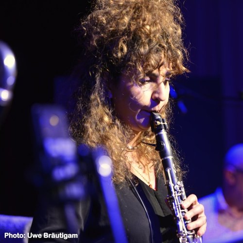 Gina Schwarz spielte mit der Festivalband Multiphonics 8, die aus lauter herausragenden Musiker*innen bestand. Die besondere Besetzung bestand darin, dass neben Klavier ( Lucas Leidinger ), Gitarre (Mahan Mirarab), Schlagzeug (Dirk Peter Kölsch) und Flöte (Daniel Manrique-Smith), vier Klarinetten dabei waren, zwei Bassklarinetten (Thomas Savy, Clemens Salesny) und zwei B-Klarinetten (Mona Matbou-Riahi , Annette Maye ).